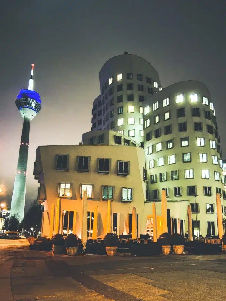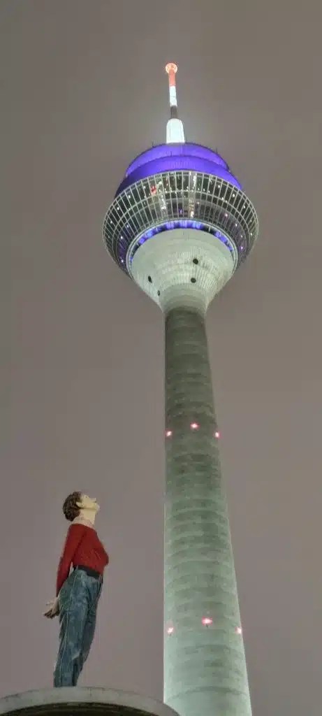 - La torre de TV (Rheinturm) es un ícono del skyline de la ciudad, se ve desde cada punto. Se puede subir y tener una hermosa panorámica de todo Düsseldorf, y si el día está despejado se llega a ver la ciudad vecina de Colonia. Arriba hay un restaurante japonés, donde se puede ir a comer o a beber algo. Los tickets los podés comprar en la web acá. Hay precios más baratos si vas antes de las 11am o luego de las 22pm.